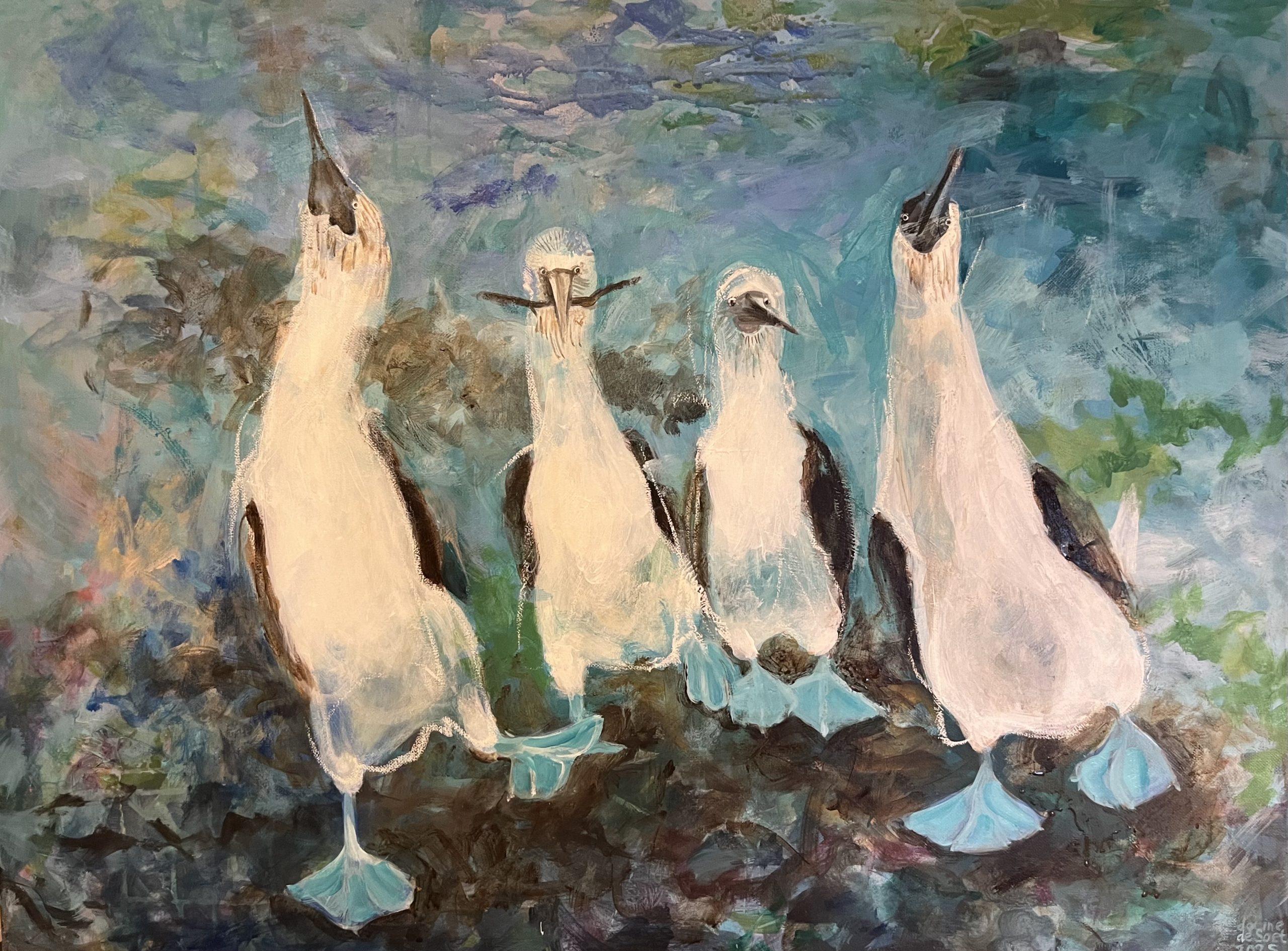 Blue footed boobies, Jan van Genten van de Galapagos 60 x 80 cm acryl op doek Verkocht